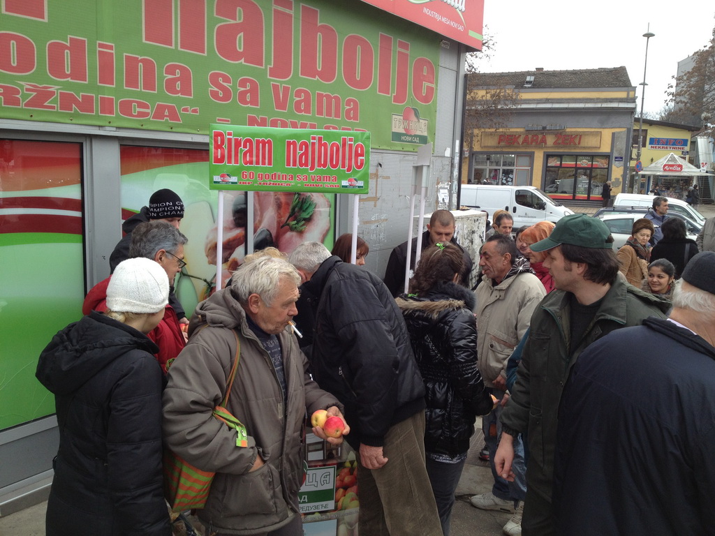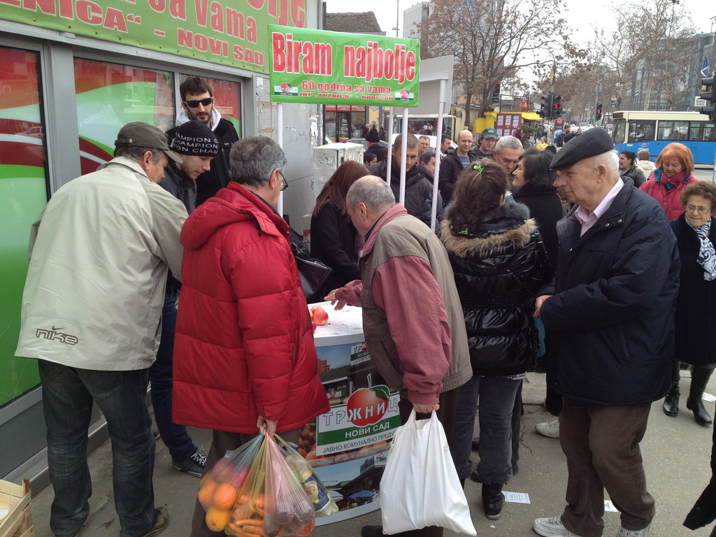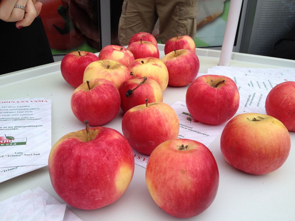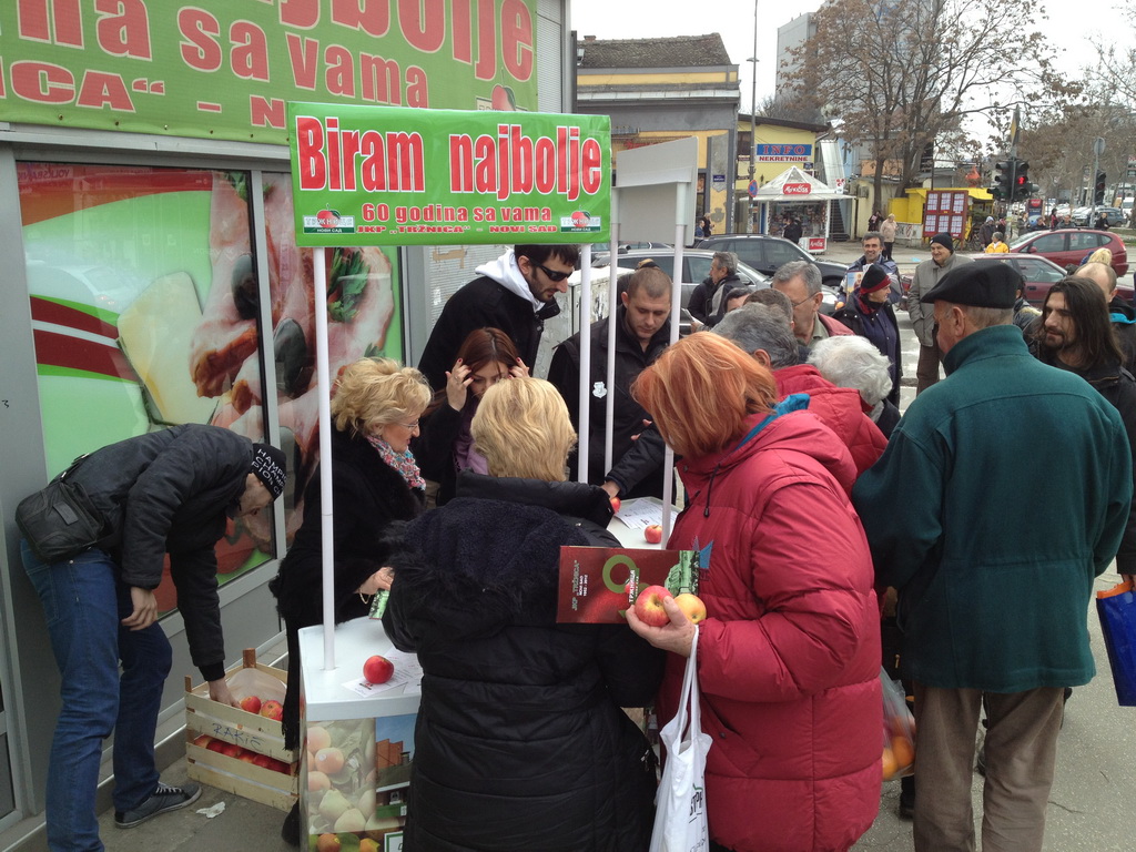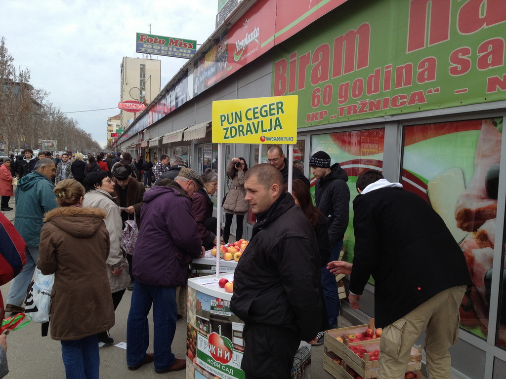 JKP „Tržnica“ je danas 1.02.2013. na dan proslave Grada Novog Sada poklanjala građanima jabuke ispred Futoške pijace.