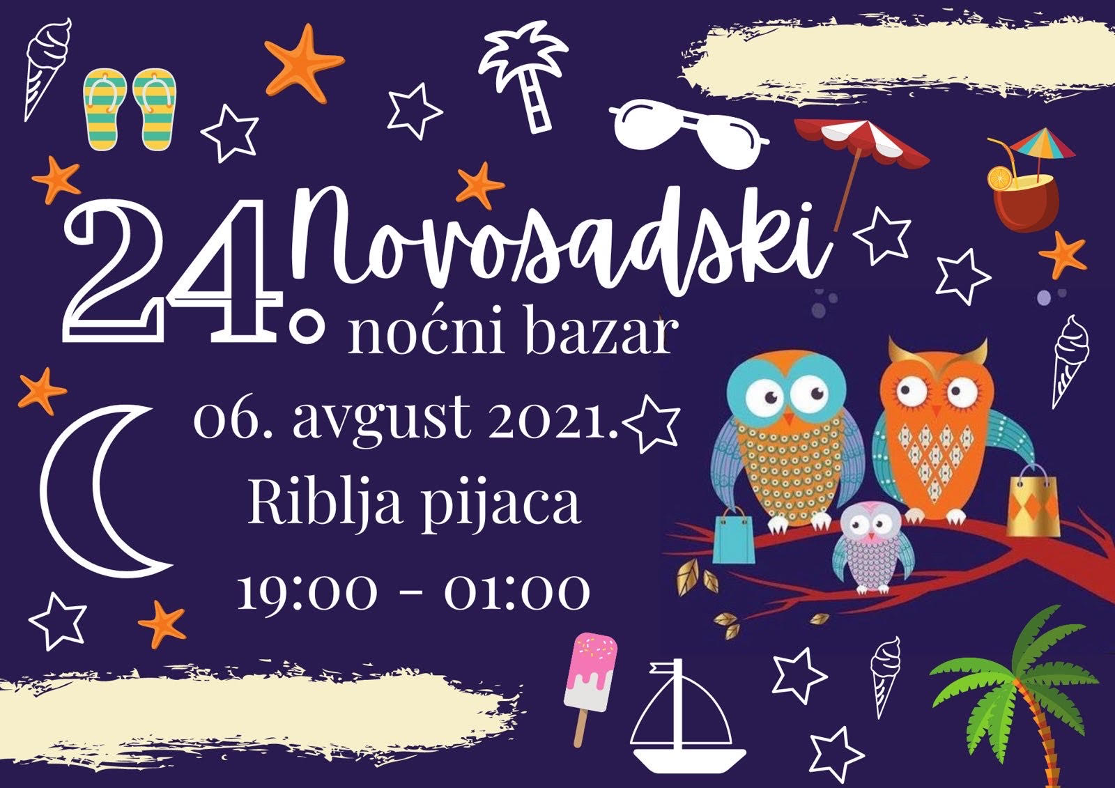 Novosadski noćni bazar biće održan po 24. put u petak, 6. avgusta, na najstarijoj novosadskoj Ribljoj pijaci, a vreme trajanja ovoga puta je od 19 časova do 1 časa posle ponoći.