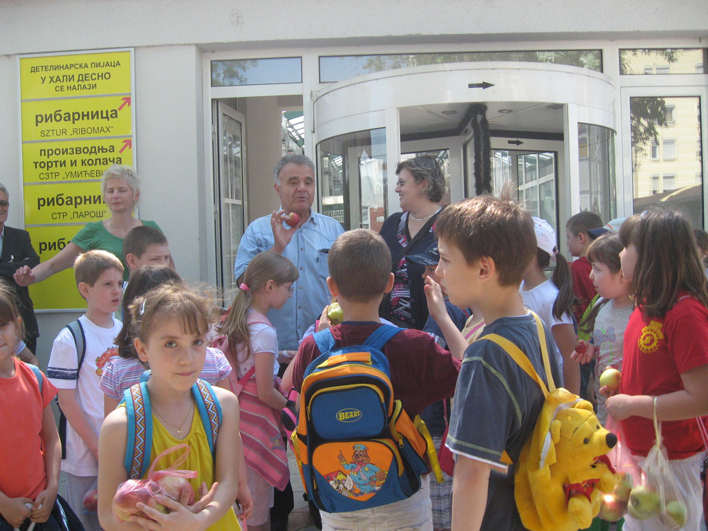 Današnjom posetom učenika II razreda OŠ "Svetozar Marković Toza" Detelinarskoj pijaci, završena je ovogodišnja promotivna akcija "MALIŠANI NA NOVOSADSKIM PIJACAMA", koja je započeta 06. maja ove godine. Da podsetimo, učenici 4 osnovne škole iz Novog sada su kao gosti našeg Preduzeća posetili Satelitsku, Riblju, Futošku i Detelinarsku pijacu ovoga meseca sa ciljem da se naši najmlađi sugrađani upoznaju sa funkcionisanjem pijaca i edukuju o uticaju zdravog načina ishrane na njihov rast i razvoj. Marketinšku akciju je pomoglo Osiguravajuće društvo "Dunav" iz Novog Sada, koje je svakoj od škola poklonilo po 1 TV aparat, a predstavnici našeg Preduzeća su prilikom svake posete delili jabuke deci.