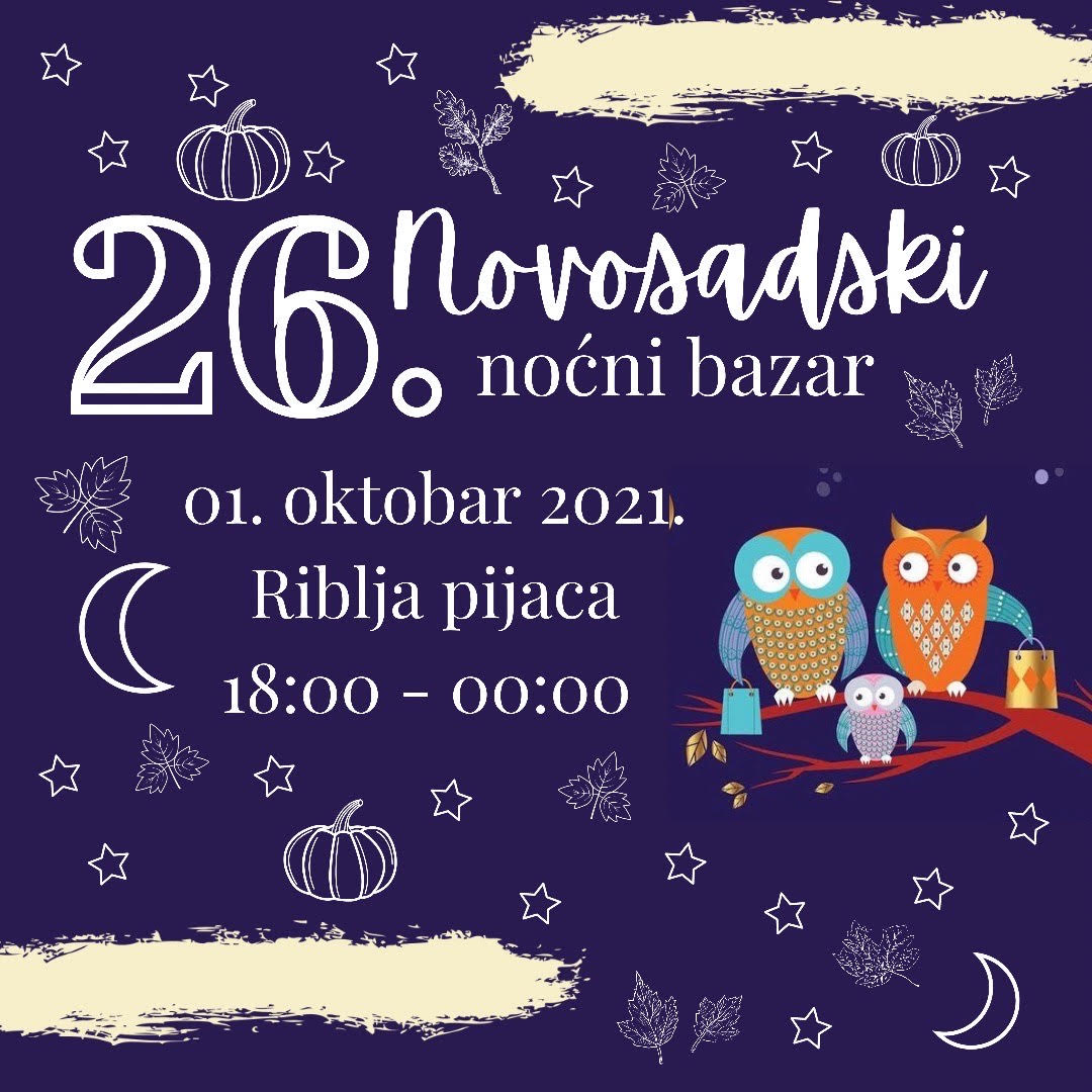 U petak, 1. oktobra, na najstarijoj novosadskoj Ribljoj pijaci održaće se još jedan, 26. po redu, Novosadski noćni bazar. Najbolja ponuda najkvalitetnijih proizvoda malih proizvođača i izlagača i ovoga puta biće pripremljena za sve posetioce ove, sada već tradicionalne, manifestacije.