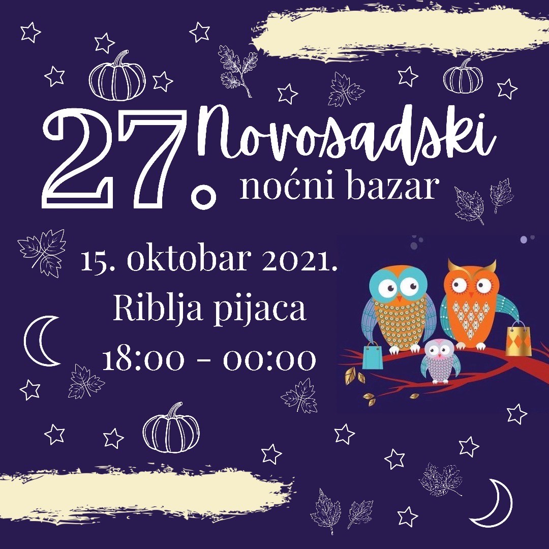 U petak, 15. oktobra, na najstarijoj Ribljoj pijaci održaće se još jedan jesenji, 27. po redu, Novosadski noćni bazar. Na ovoj prestižnoj manifestaciji očekuje vas ponuda najkvalitetnijih proizvoda malih proizvođača i izlagača, posetiocima će se deliti platneni cegeri, a, tradicionalno, biće priređena i najbolja žurka u gradu. Očekujemo vas na Ribljoj pijaci!