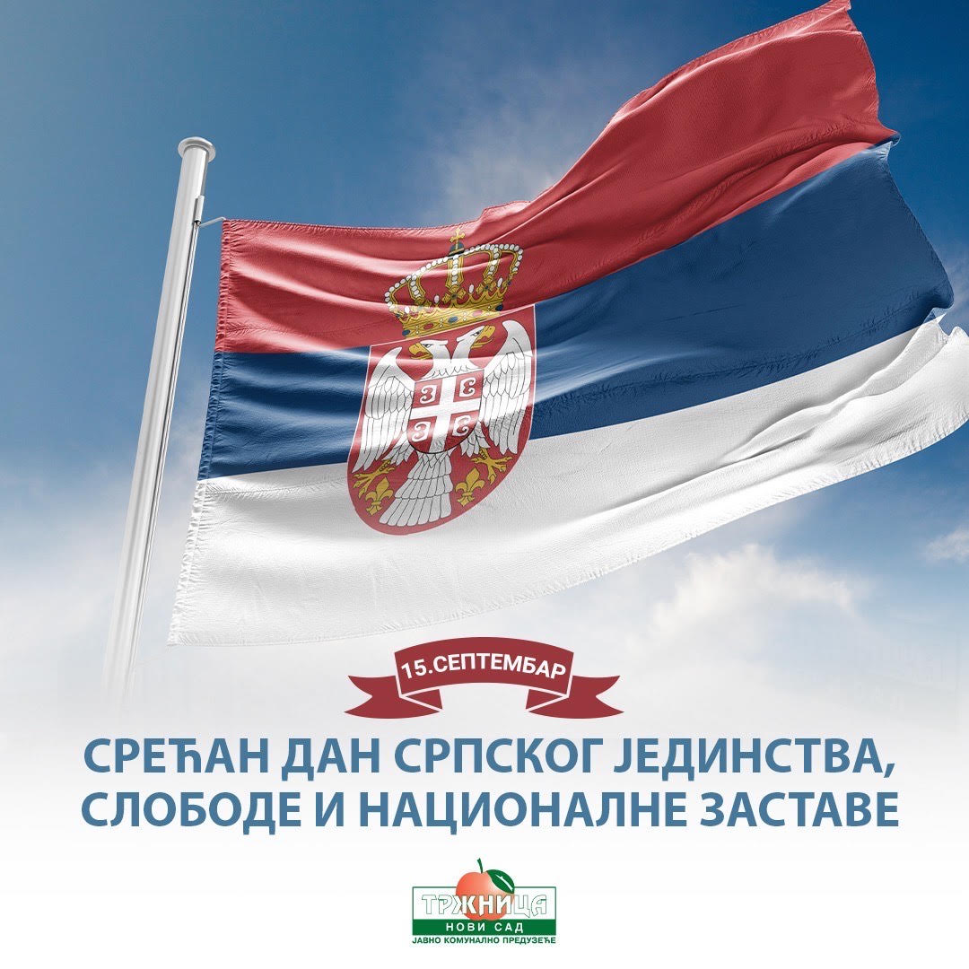 Javno komunalno preduzeće „Tržnica“ Novi Sad, povodom Dana srpskog jedinstva, slobode i nacionalne zastave istaklo je državnu zastavu Republike Srbije na svim pijacama kojima upravlja i na zgradi direkcije. Na ovaj način, preduzeće je ukazalo na značaj praznika koji se obeležava u znak sećanja na proboj Solunskog fronta 1918. godine u Prvom svetskom ratu.